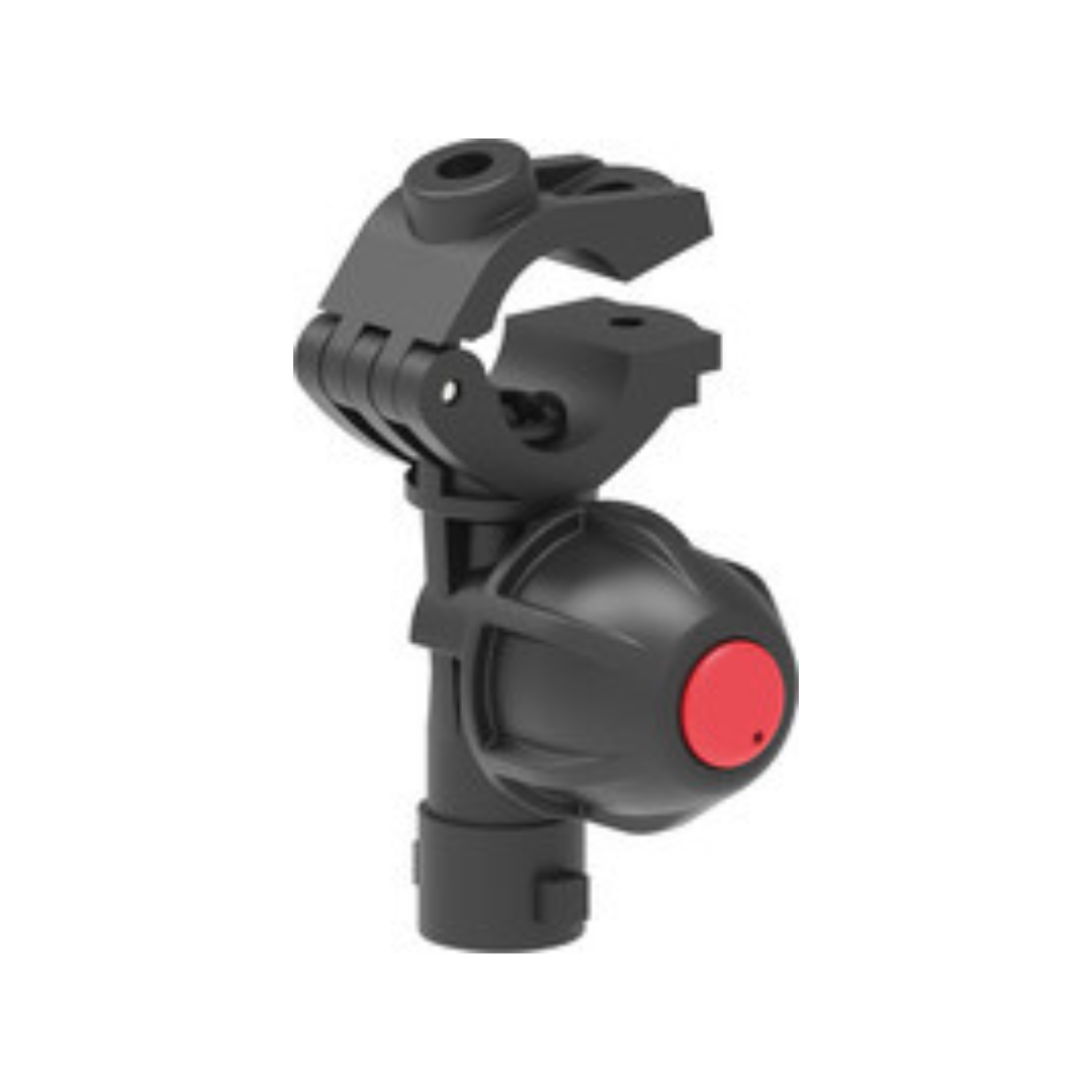 Portaboquillas herbicidas con abrazadera articulada y antigota de membrana y acoplamiento rápido.