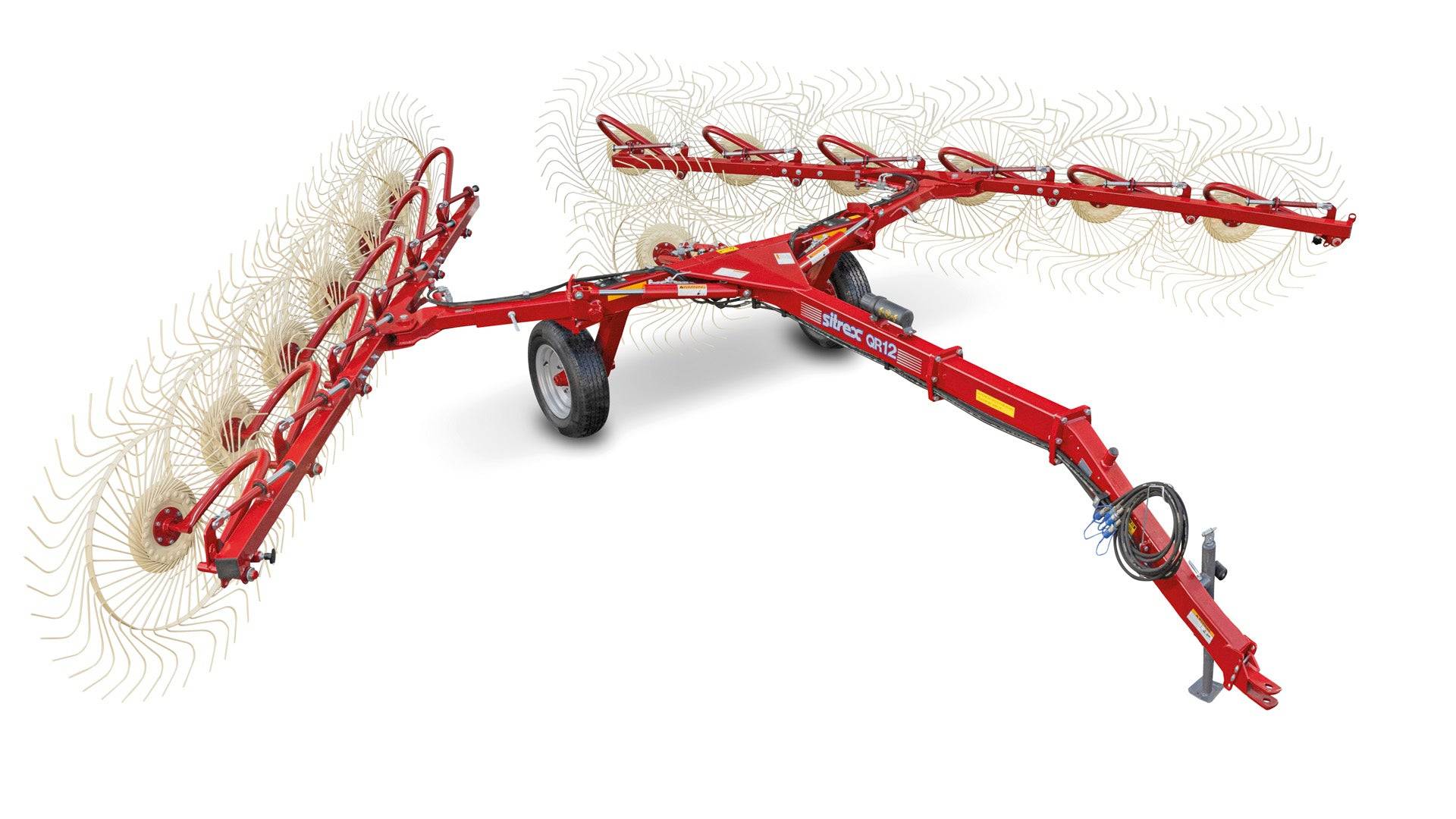 Los rastrillos Sitrex de ruedas tipo "V" de la gama QR, con 8, 10 o 12 soles, ofrecen a los agricultores la oportunidad de utilizar una máquina de alto rendimiento, tanto en calidad como en cantidad, con una gran facilidad de uso. La máquina es compacta, pero a la vez cuenta con un amplio espacio libre en el área de paso del heno rastrillado. Esto le confiere excelentes características operativas, así como maniobrabilidad y estabilidad tanto durante el trabajo como durante el transporte.